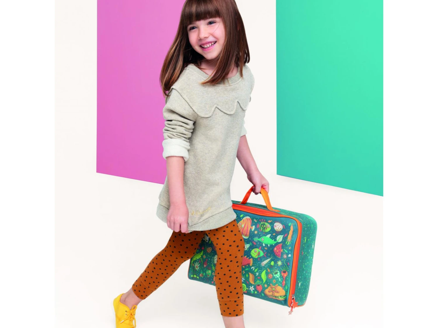 Une valise joliment illustrée d’un décor marin, parfaite pour emporter ses affaires pour les vacances ou le temps d’un week-end. Cette valise est imperméable. Son intérieur textile se compose d’un grand compartiment. Légère, elle se transporte facilement grâce à son anse.