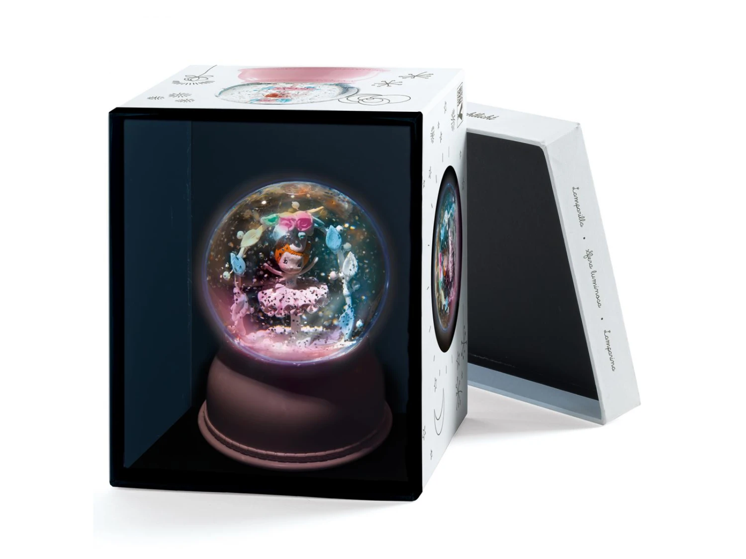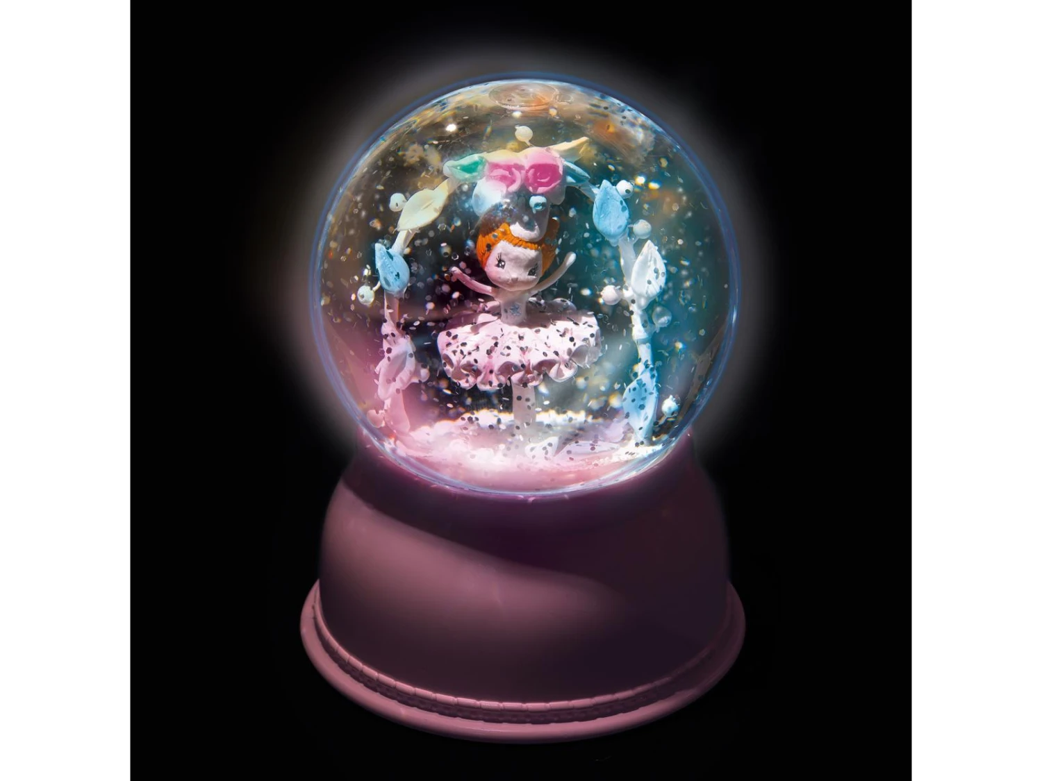 Une veilleuse boule de neige scintillante « Ballerine » inspirée des ballets les plus féériques. Remplie de petites paillettes, cette veilleuse est équipée d’un mécanisme silencieux qui fait tournoyer les paillettes autour de la ballerine et diffuse une lumière discrète qui change de couleur. Pour des nuits douces et apaisantes.