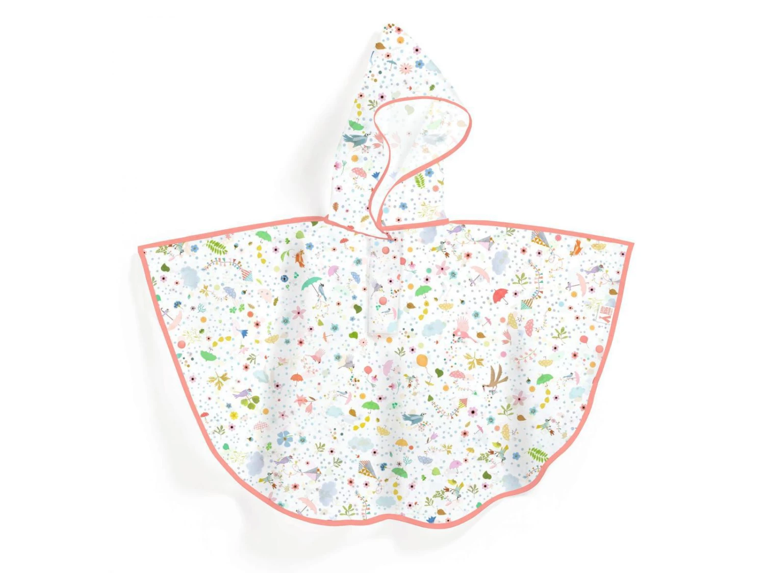 Une cape de pluie avec capuche (5-7 ans), chic et pratique, aux illustrations printanières. Douce et souple, elle est agréable à porter et accompagne l’enfant dans ses mouvements. Elle s’enfile facilement grâce à ses boutons pression. Un accessoire idéal pour égayer les sorties sous le pluie !
