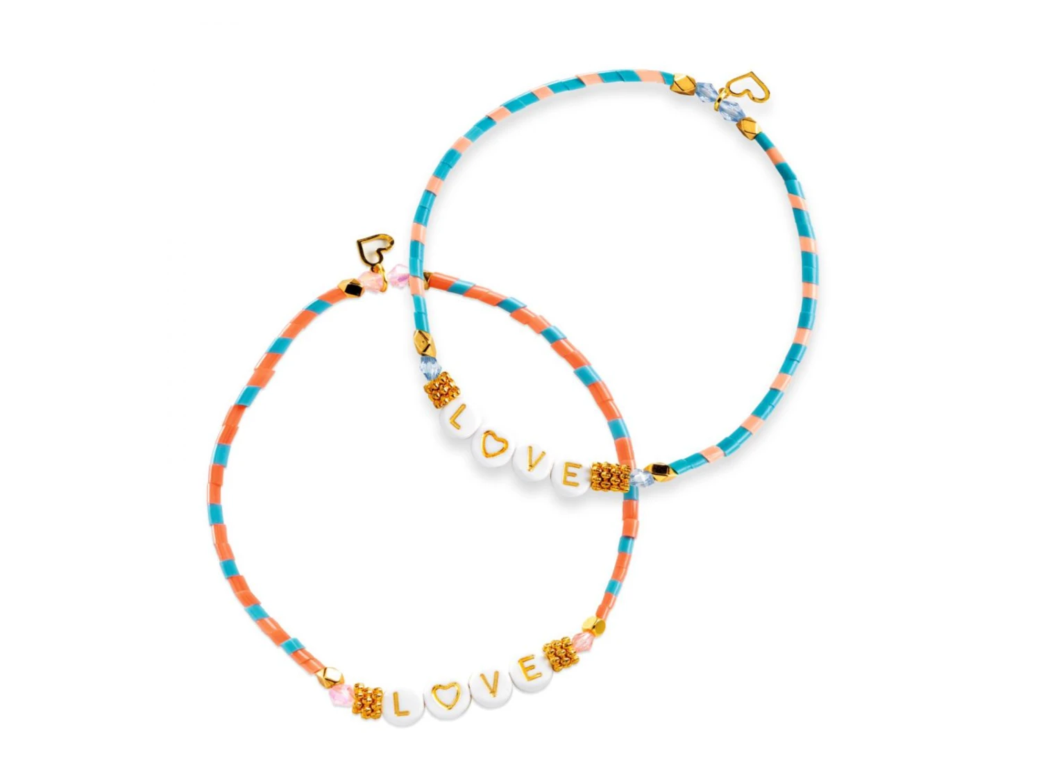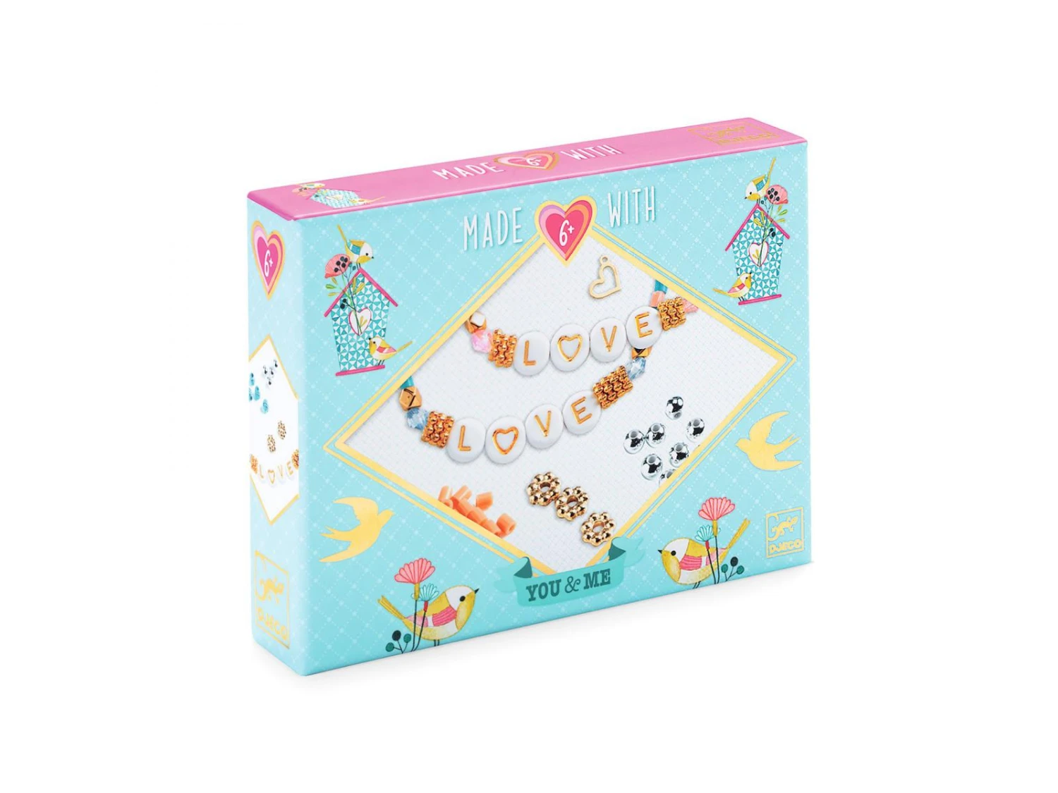 Dans une jolie boite brillante, des perles alphabet et des charms pour créer de jolis bijoux avec des prénoms ou des messages. 2 bijoux à conserver ou à offrir dans un joli sac en organza. Et pour encore plus de souvenirs, deux cartes illustrées sont incluses pour inscrire des mots doux.