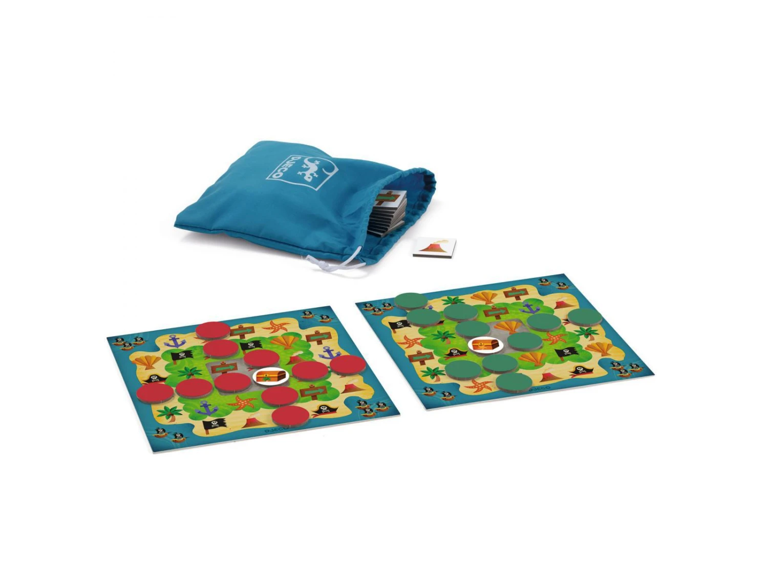 Qui sera le premier pirate à retrouver le chemin de son trésor caché au milieu de l’île ? Déplacer un à un vos moussaillons pour reproduire la croix qui indique le lieu de la cachette. Un jeu de déplacement dans l’espace facile et stratégique.