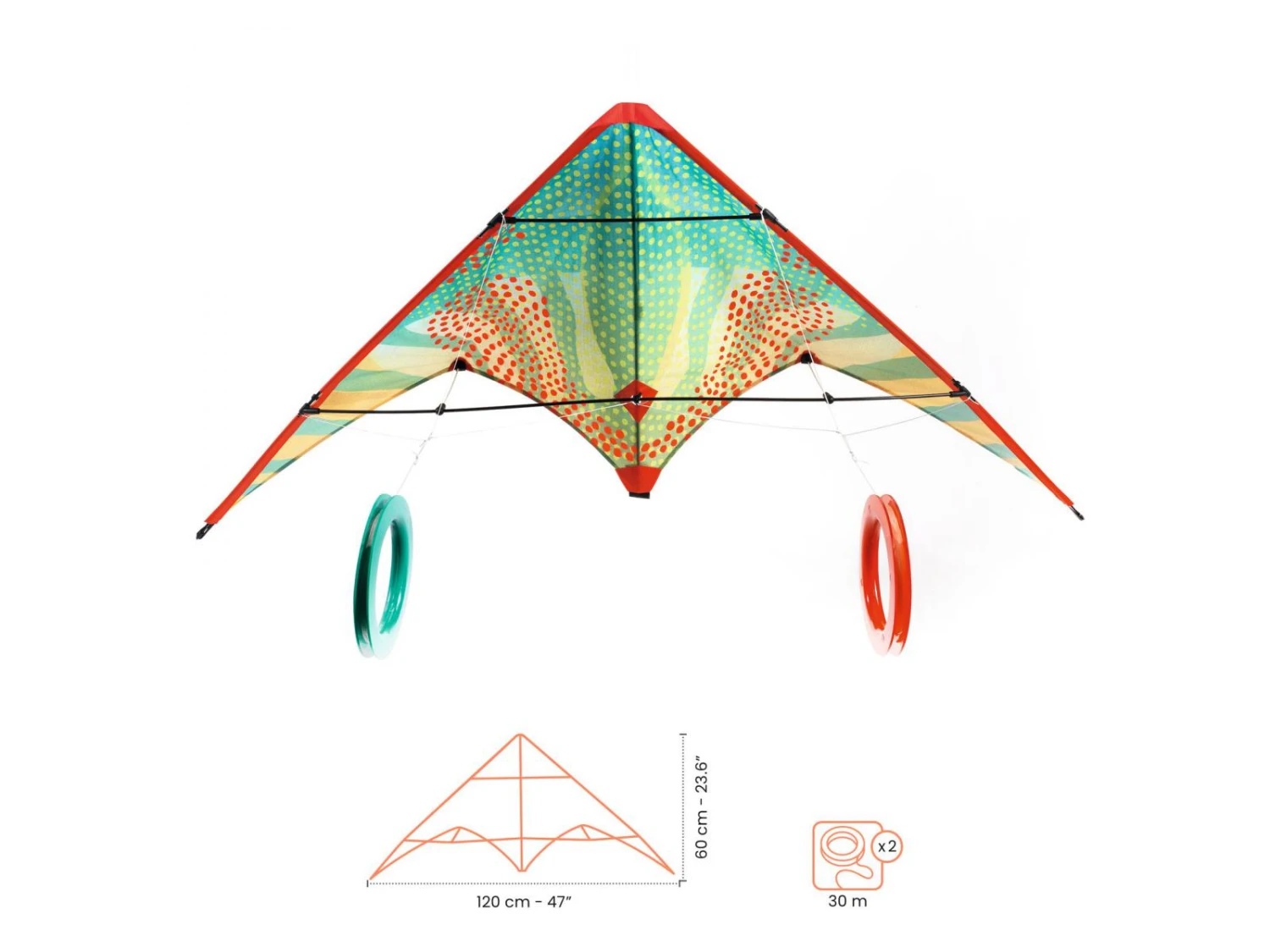 Red Dots est un cerf-volant pilotable grâce Ă ses 2 lignes. Il permet de s’initier au dĂ©placement dans les airs et au plaisir de dĂ©couvrir de premières figures acrobatiques. Dimension : 120 x 60 cm.