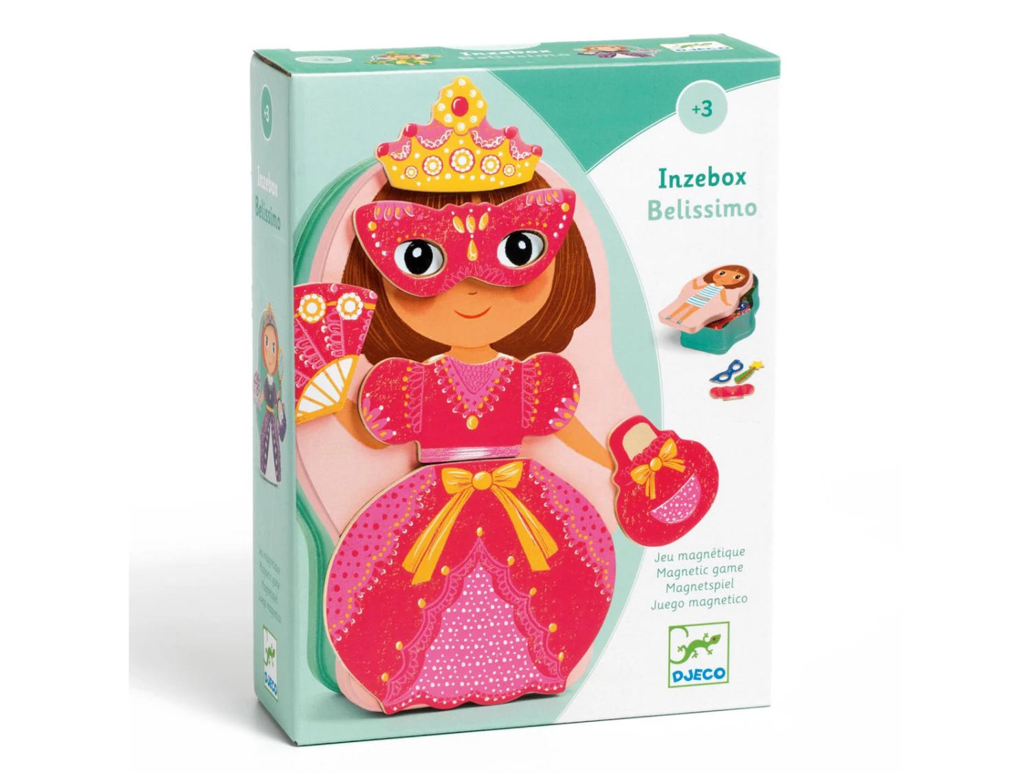 Inzebox, une nouvelle manière de jouer avec des magnets! Une boĂ®te mĂ©tallique en forme de personnage sur laquelle l’enfant pose des pièces en bois magnĂ©tiques pour s’amuser Ă habiller de jolies fĂ©es et princesses.