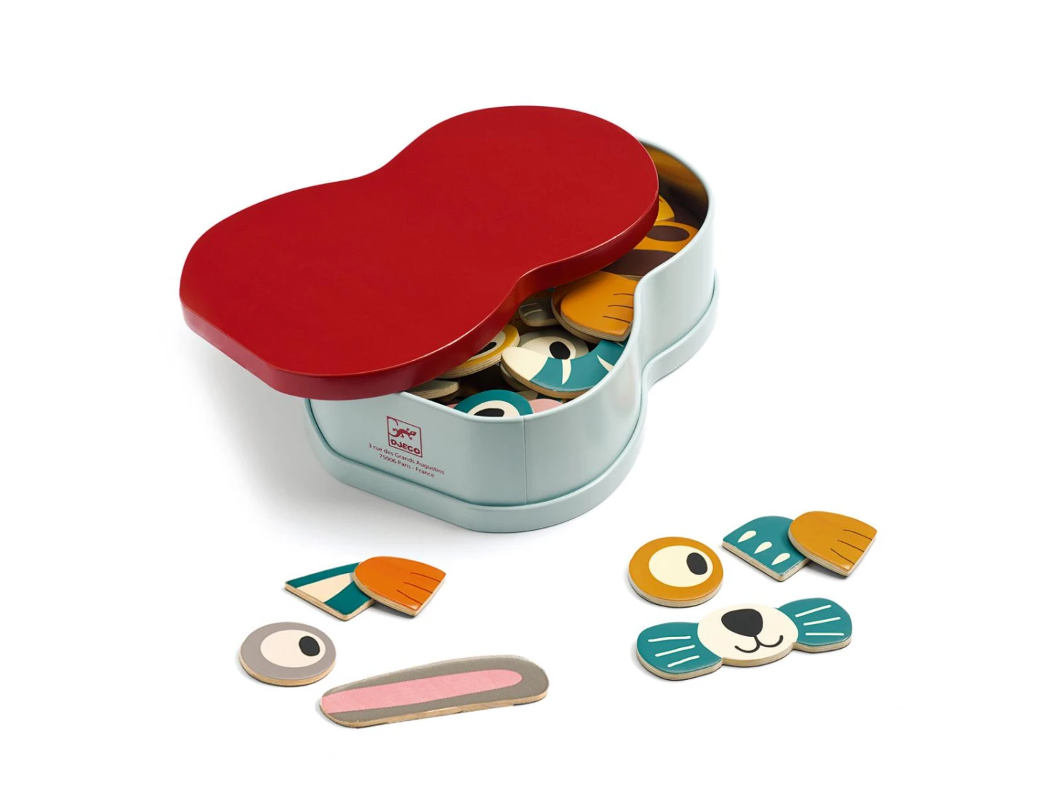 Inzebox, une nouvelle manière de jouer avec des magnets ! Une boĂ®te mĂ©tallique sur laquelle l’enfant pose des pièces en bois magnĂ©tiques pour s’amuser Ă crĂ©er un lapin, un chat, une chouette, un castor ou bien plus encore !