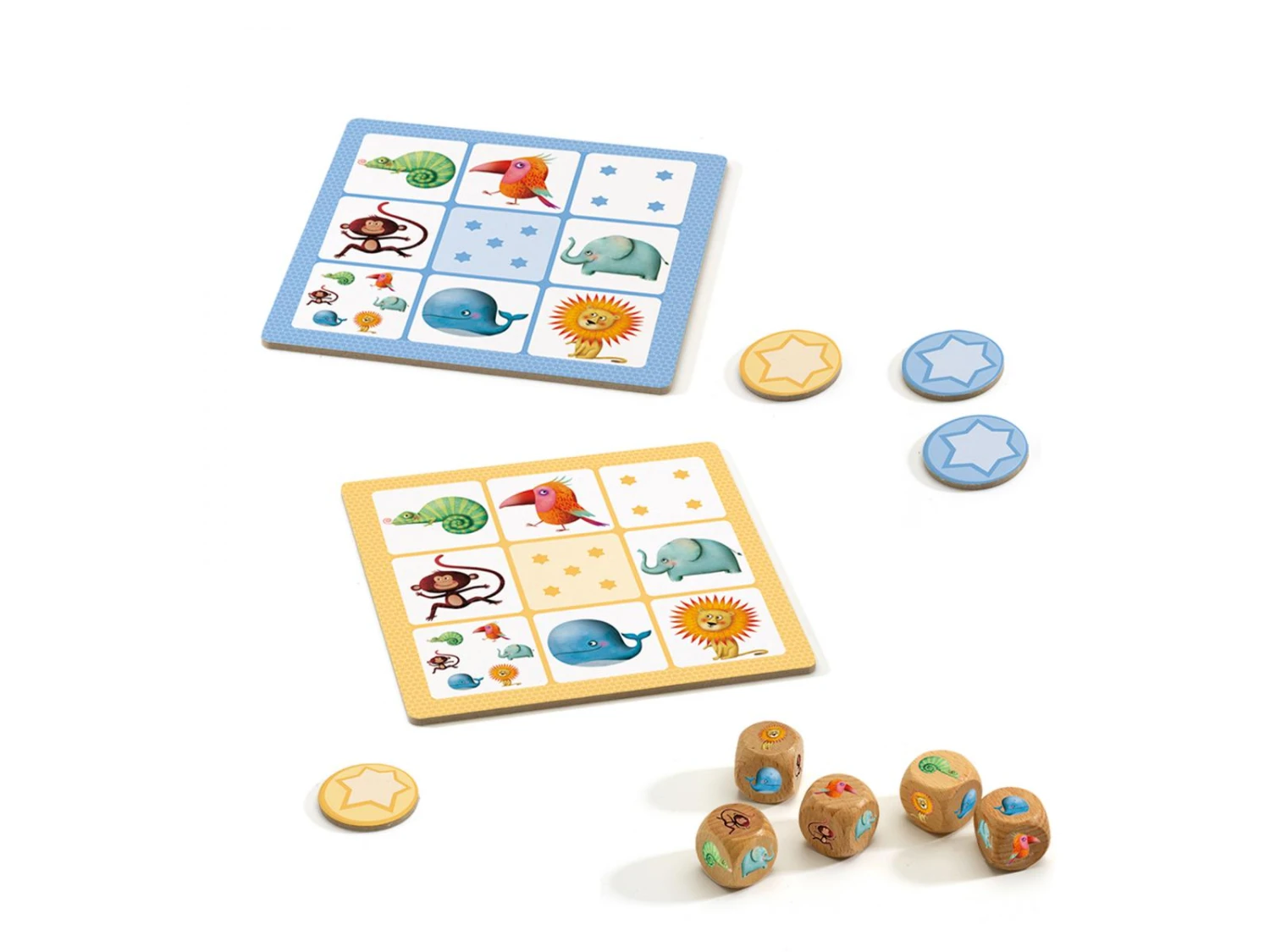 Le célèbre jeu du Yam’s revisité pour les plus jeunes, dès 4 ans. Sur les dés, on trouve des animaux à regrouper en 3 lancers pour former des brelans, des familles, des carrés et surtout le Yam’s comme les grands !