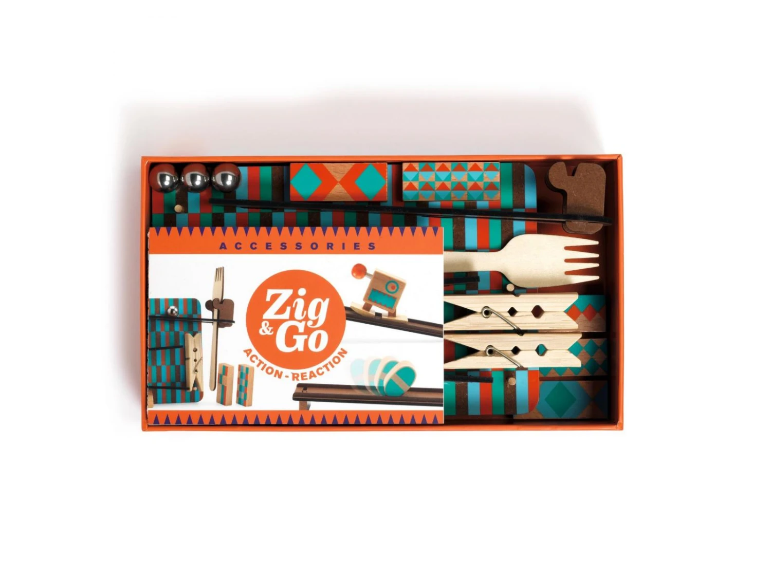 Un jeu de rĂ©action en chaĂ®ne, de rĂ©flexion et de construction en bois pour complĂ©ter sa collection Zig & Go. L’enfant ajoute cet accessoire pour construire son parcours ou en imagine d’autres Ă l’infini. Ce jeu Ă partir de 8 ans est compatible avec tous les coffrets de la collection pour inventer des parcours action-rĂ©action encore plus ingĂ©nieux !