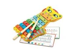 Un magnifique mĂ©tallophone en forme de chat destinĂ© aux enfants et joliment illustrĂ©. L’enfant joue les notes Ă l’aide des baguettes en bois. Pour le guider sont incluses deux partitions, qui reprennent les codes couleurs des touches. Le cadeau idĂ©al pour les petits musiciens Ă partir de 3 ans.