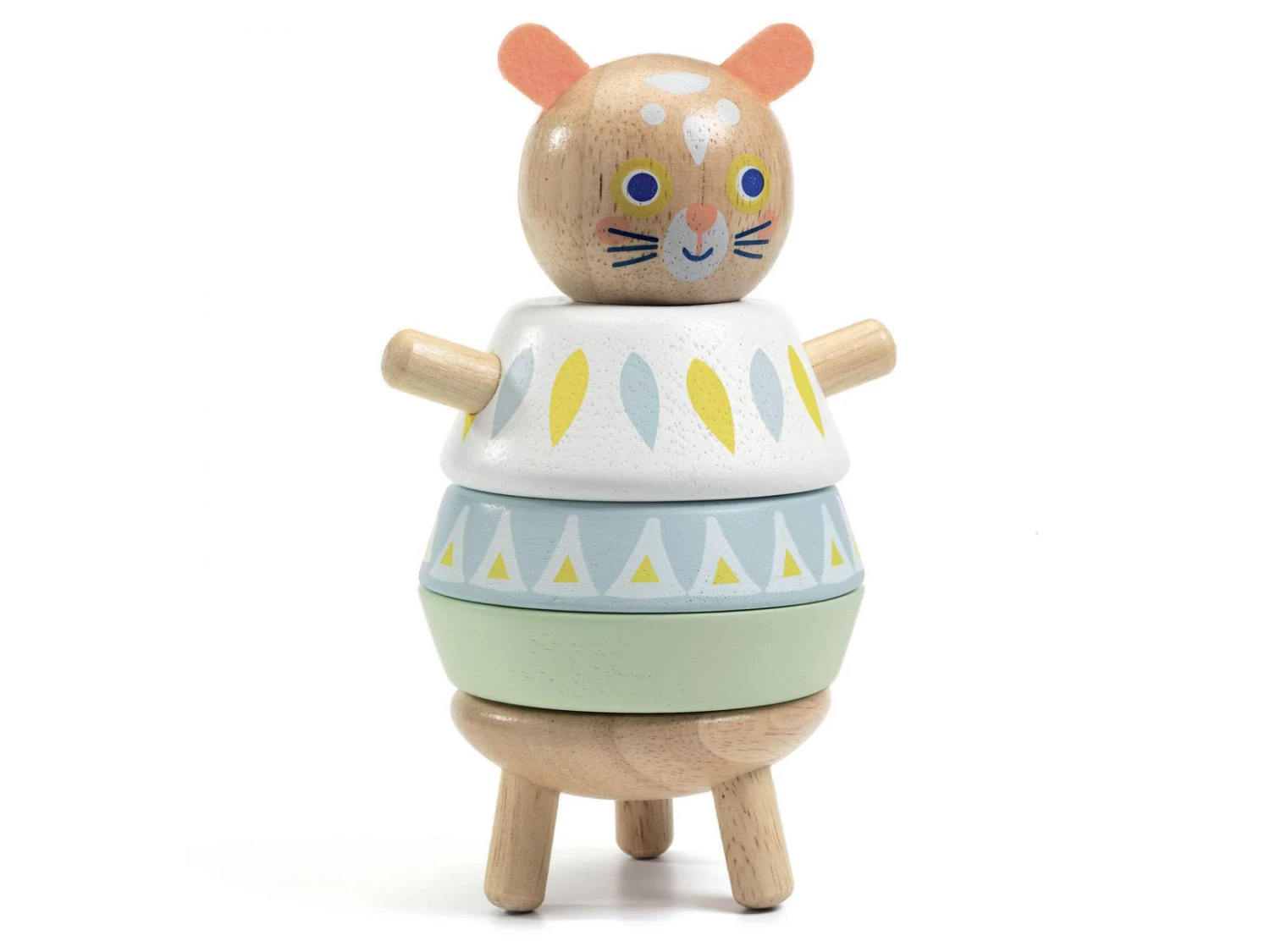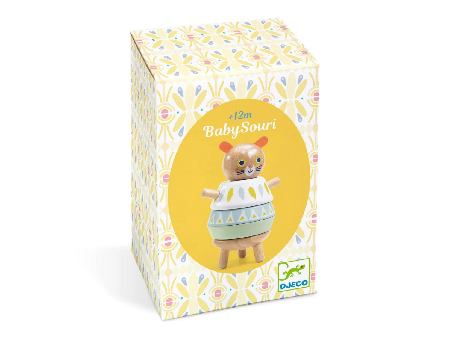 Un jeu d’empilage en bois pour reproduire une souris avec les 5 pièces superposĂ©es. L’enfant empile dans l’ordre les pièces du corps de la souris sur la tige. Les jambes et les bras apparents aideront l’enfant Ă retrouver le bon ordre.