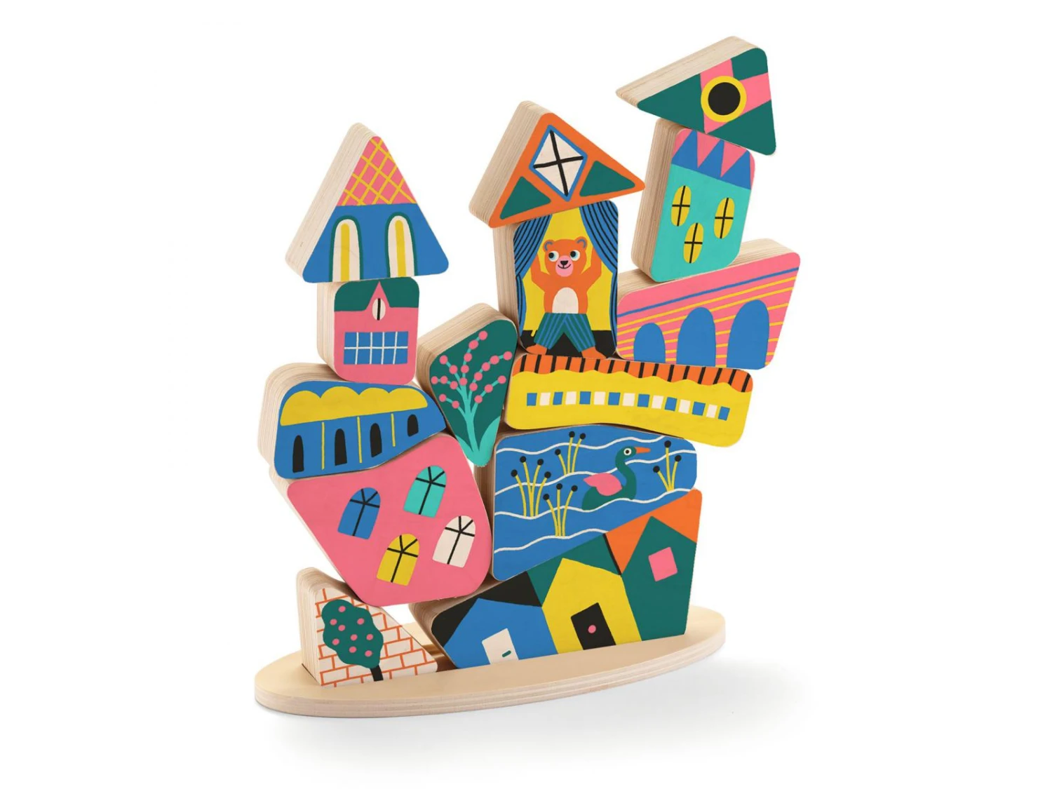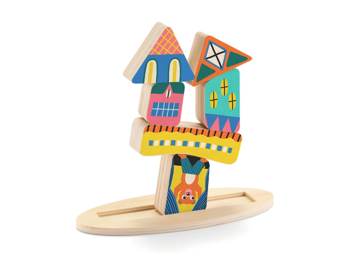 Ze Stakaboom est un jeu de construction en bois pour apprĂ©hender la notion d’Ă©quilibre. L’enfant reproduit les constructions indiquĂ©es sur les cartes en prenant soin de positionner les pièces dans le bon sens ! Gare Ă la pièce mal placĂ©e qui fera tout tomber !