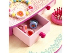 Flora coiffeuse est une adorable coiffeuse en bois avec un grand miroir pour que les petites filles puissent se faire une beauté ! Deux tiroirs pour ranger leurs bijoux et de nombreux accessoires pour se faire belle.