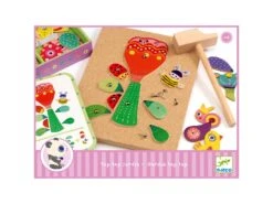 Tap tap jardin, un classique des activitĂ©s de maternelle revisitĂ© par Djeco pour dĂ©velopper la dextĂ©ritĂ© des plus jeunes. L’enfant construit ses propres fleurs et jardins en plaçant les pièces sur le support en liège et en les fixant Ă l’aide des petits clous et du marteau. Il reproduit les modèles ou fait appel Ă son imagination pour crĂ©er un beau jardin ! Le tout dans une jolie boĂ®te en bois !