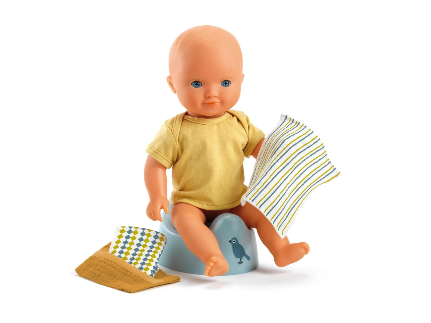 Un pot et un étui avec deux lingettes douces en tissu double gaze : des accessoires incontournables pour les premiers pas vers la propreté de sa poupée !