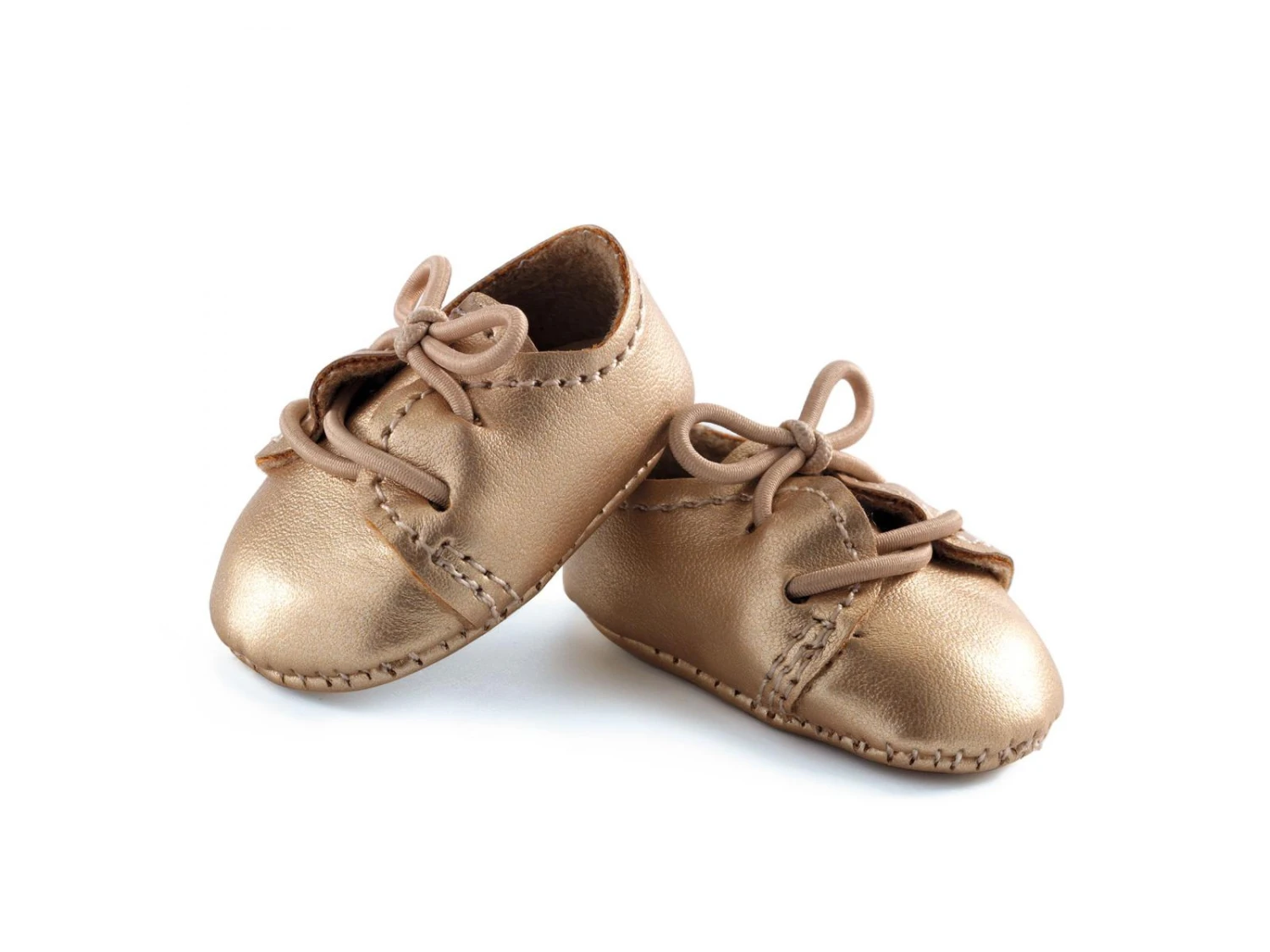 Adorable paire de chaussures dorée à lacets. Un accessoire indispensable pour compléter la tenue de sa poupée.