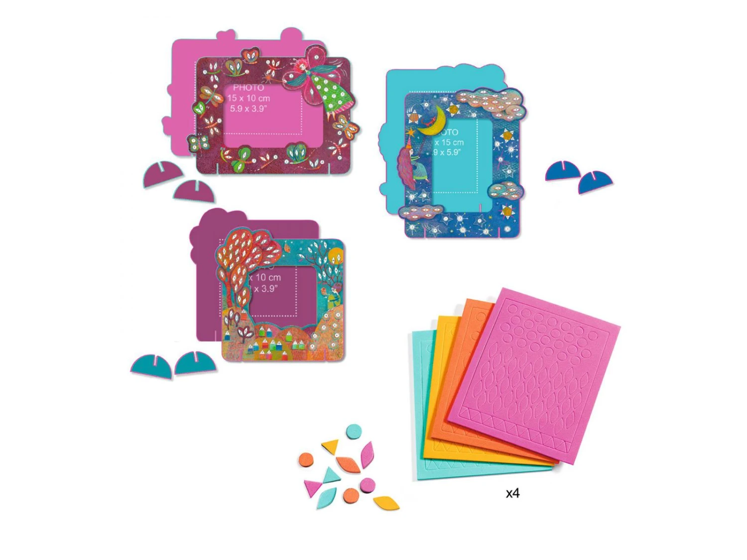 Un kit créatif avec 3 cadres féériques à décorer pour sublimer les meilleurs moments ! L’enfant colle les mosaïques sur le contour puis il assemble toutes les pièces pour construire son cadre. Il ne reste plus qu’à choisir la photo.