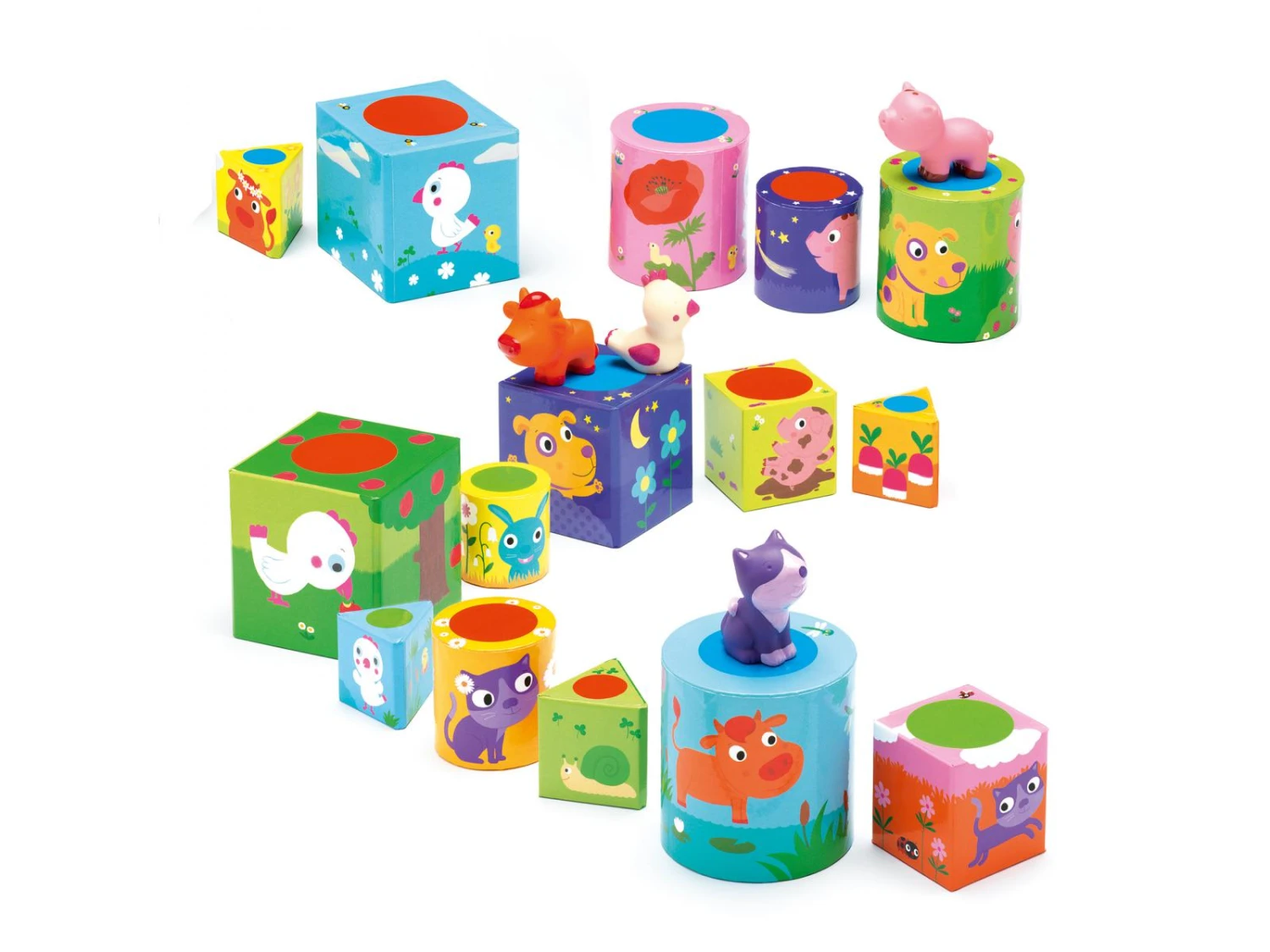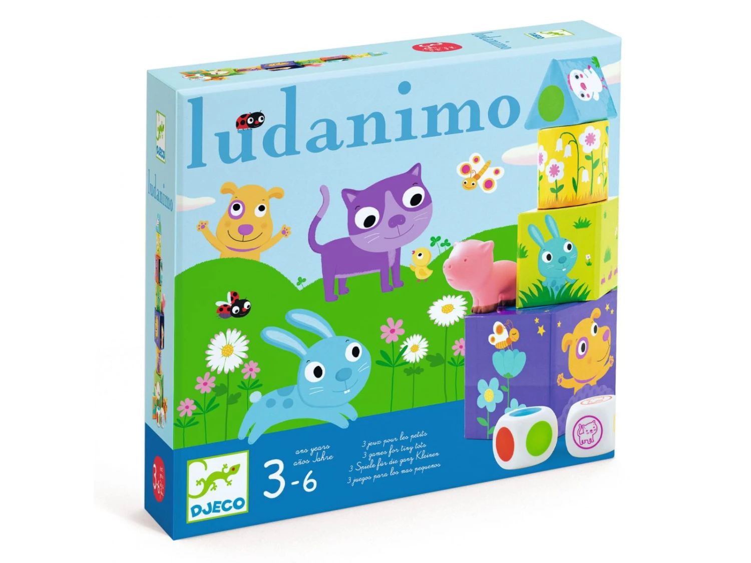 Un jeu 3-en-1  : un jeu de mémoire, un jeu d’équilibre et un jeu de parcours pour les plus petits à partir de 3 ans. Un jeu de parcours pour jouer avec les couleurs, un jeu de mémoire avec des animaux cachés sous des cubes et un jeu d’équilibre où l’on joue à superposer des cubes et des animaux.
