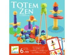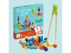 Un jeu d’adresse et de rapidité. D’abord, chacun se précipite pour attraper les bonnes pièces en bois avec les baguettes, puis, très délicatement et en restant zen, il faut être le premier à construire son totem sans qu’il tombe !