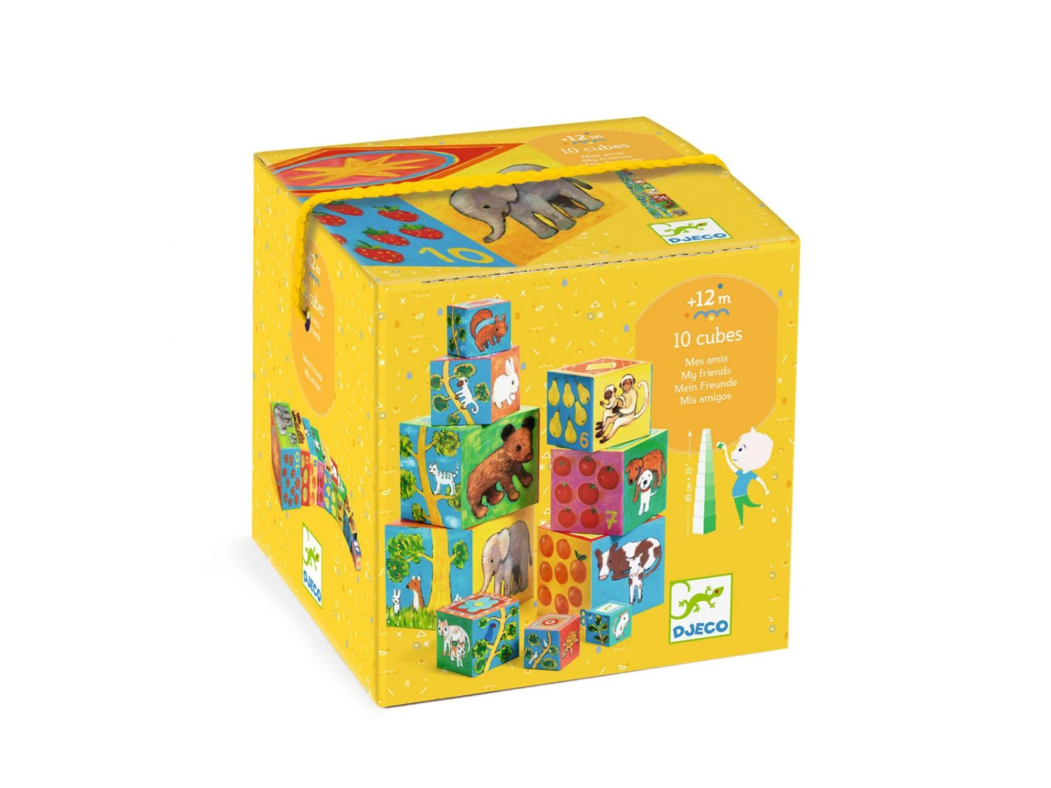 10 cubes gigognes en carton épais à emboîter, empiler et faire tomber à volonté ! L’enfant empile les cubes de façon à ce que les illustrations créent une suite logique.
