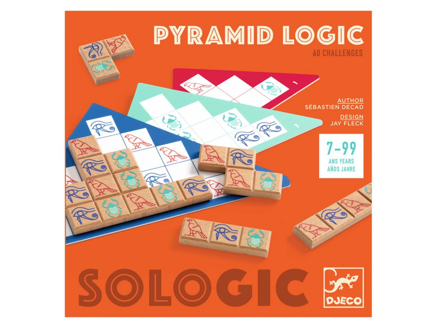 Un jeu de logique. Les célèbres pyramides égyptiennes à compléter à l’aide de 9 pièces-hiéroglyphes en bois.
