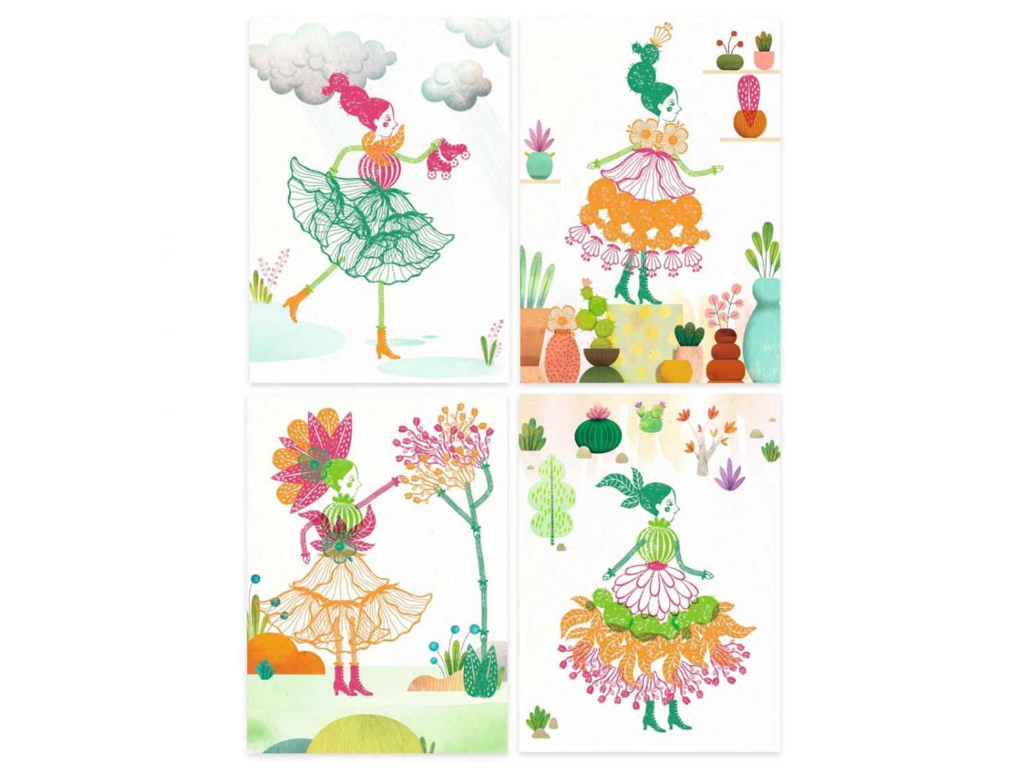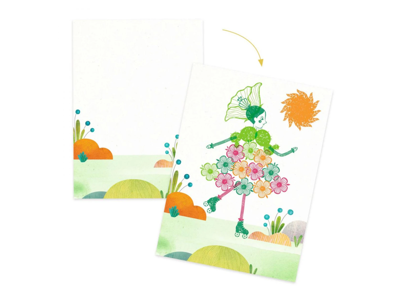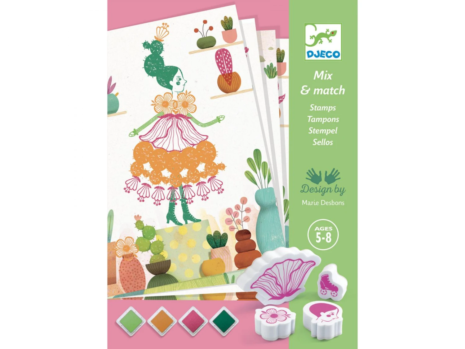 Un coffret de tampons oĂą l’enfant compose ses propres personnages en associant les formes et variant les couleurs pour crĂ©er de jolies tenues fleuries. Progressivement, il encre les tampons et marque les empreintes pour animer les dĂ©cors proposĂ©s. L’enfant s’amuse Ă modifier les combinaisons en laissant libre cours Ă son imagination. Toujours diffĂ©rentes, les dĂ©cors prennent vie !
