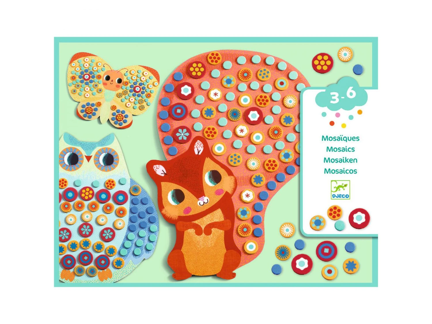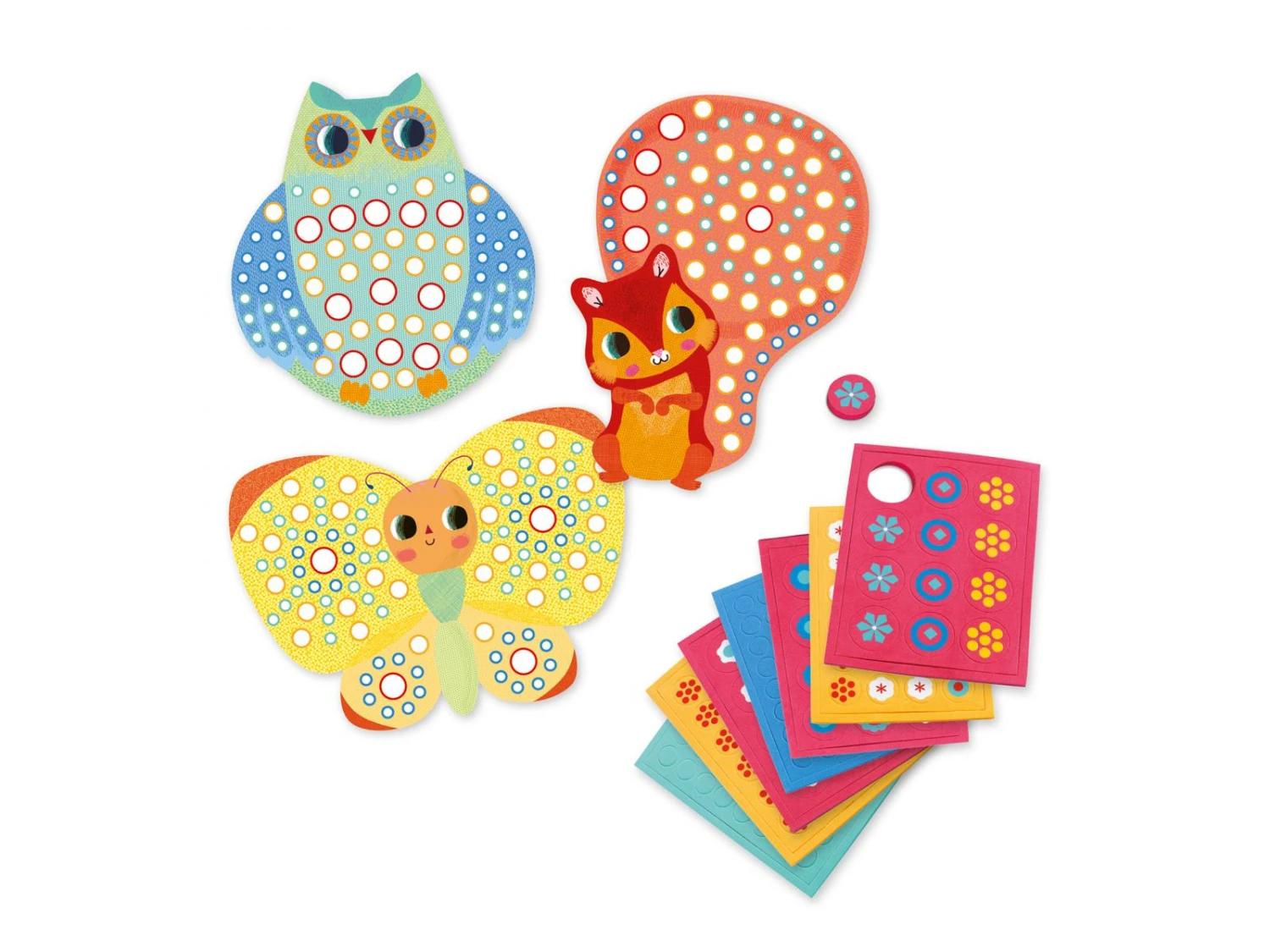 CrĂ©er des animaux tout mignons avec ce coffret d’initiation Ă la mosaĂŻque. L’enfant colle les pastilles colorĂ©es et illustrĂ©es pour habiller d’adorables animaux. 3 tableaux silhouettĂ©s Ă rĂ©aliser : un Ă©cureuil, une chouette et un papillon.