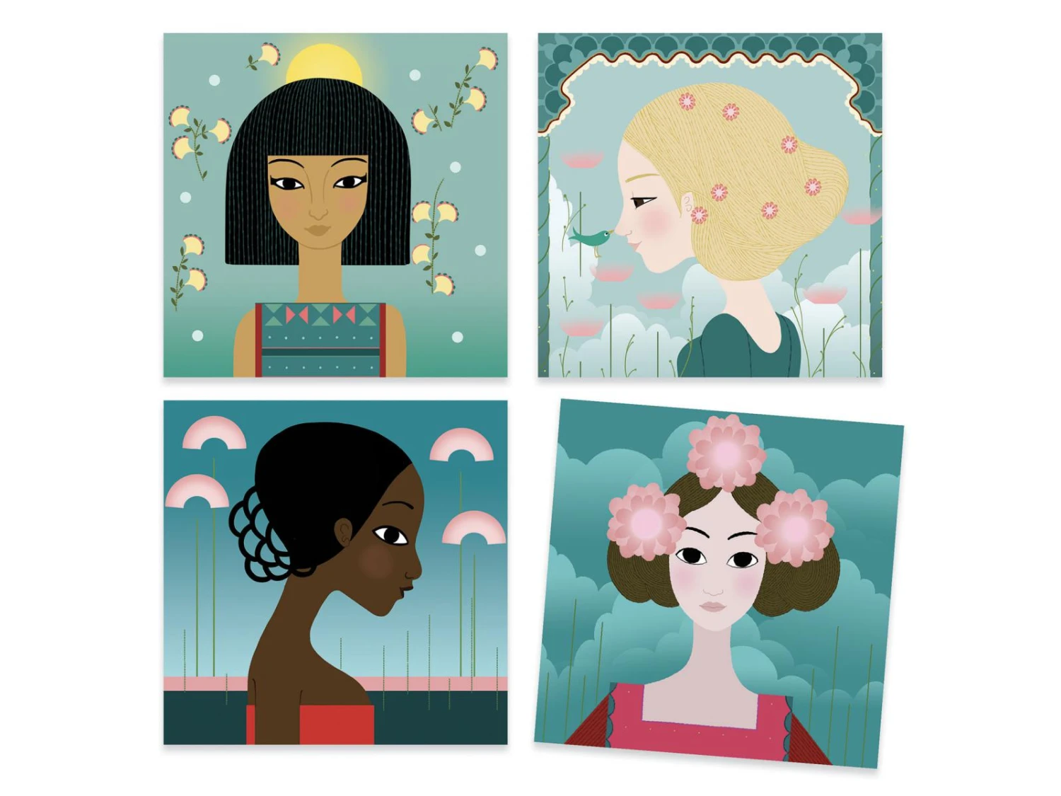 Un coffret de tampons inĂ©dit oĂą l’enfant compose des motifs pour dĂ©corer tenues et chevelures de ces princesses du monde. Il associe les motifs et les positionne avec prĂ©cision grâce aux tampons transparents qui permettent de toujours voir sa crĂ©ation. Au fil de la rĂ©alisation, les jeunes filles se parent d’ornements subtils et raffinĂ©s.