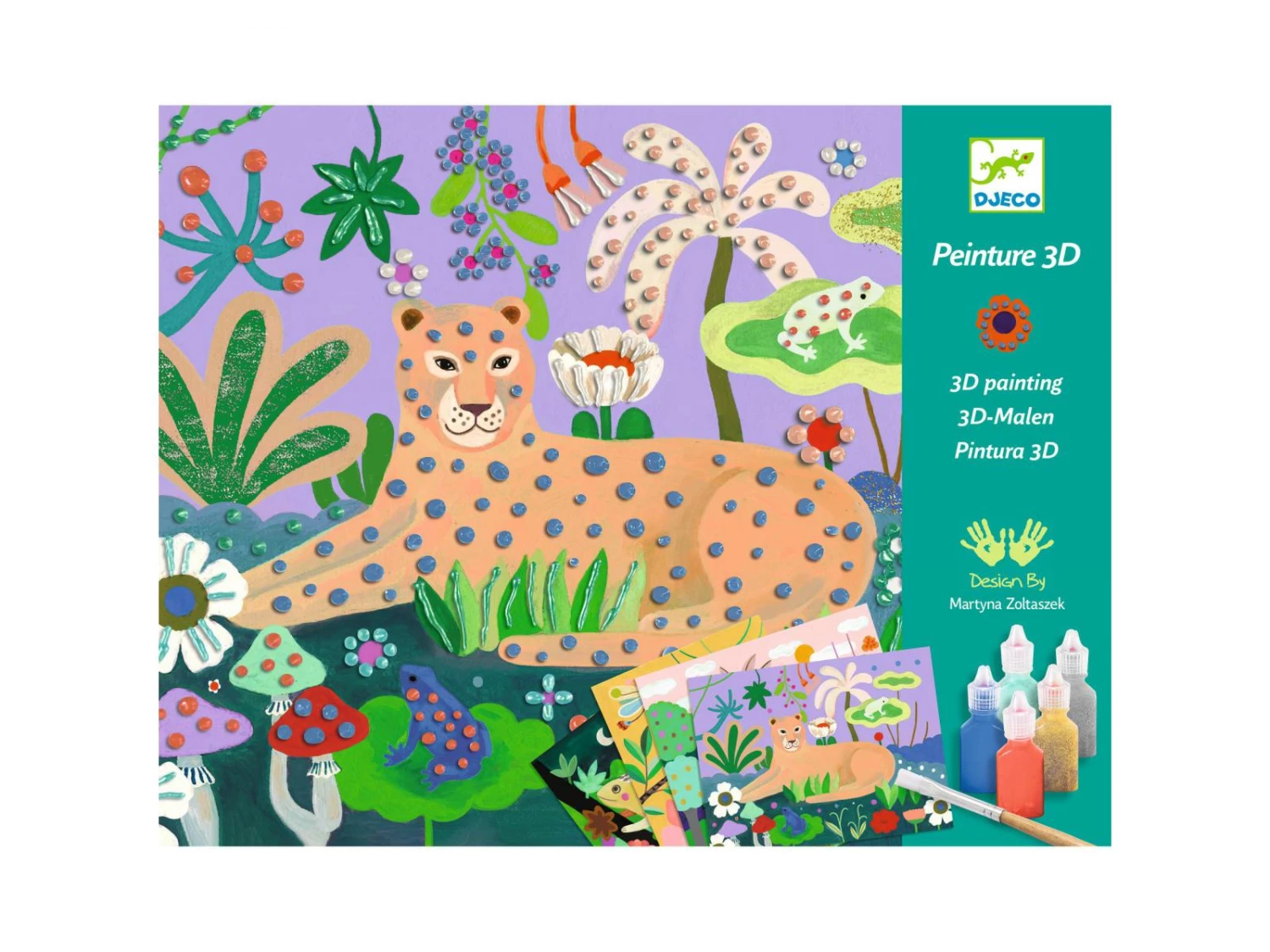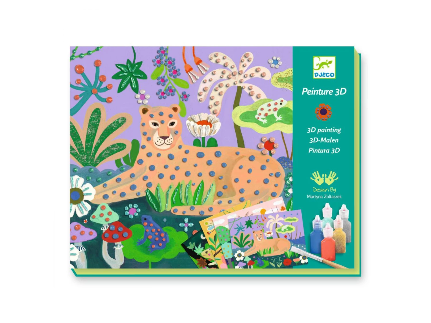 Une activitĂ© de peinture en 3D comprenant 4 animaux Ă dĂ©corer. L’enfant se munit du pinceau et crĂ©e des lignes et points en relief avec une peinture 3D aux effets brillants.