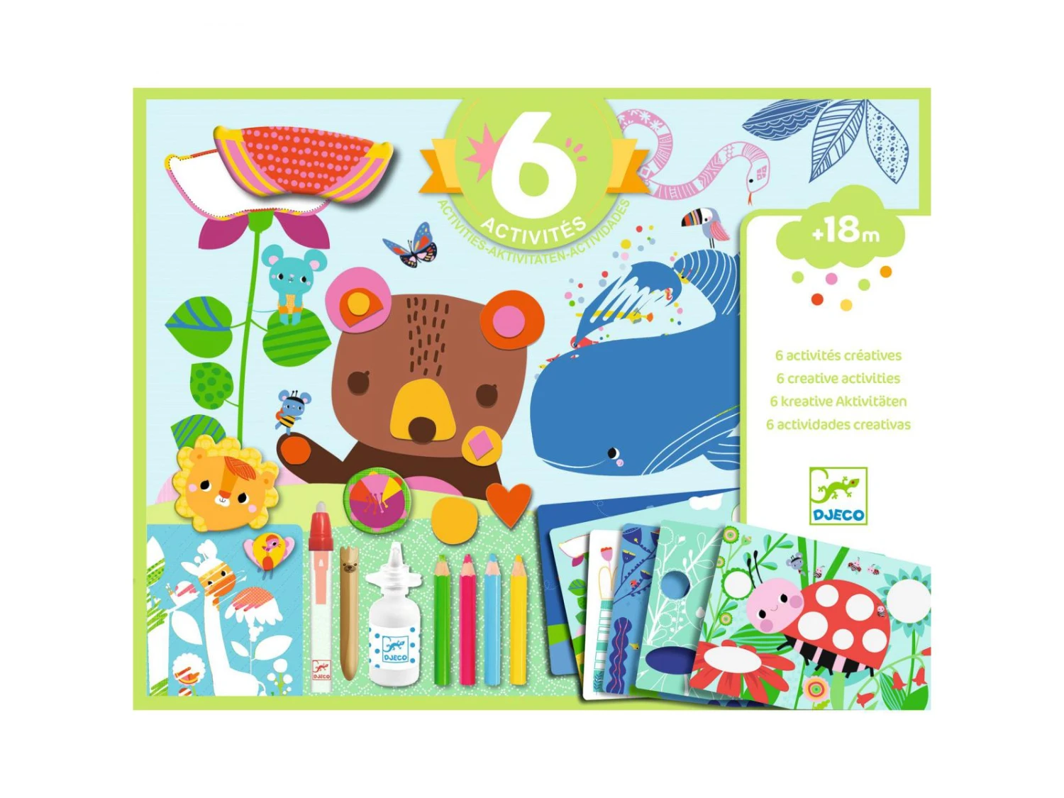 Voici un coffret très complet proposant 6 activitĂ©s crĂ©atives et de nombreux projets pour des enfants dès 18 mois. Collage, coloriage, carte Ă gratter… Il y en a pour tous les goĂ»ts ! Des heures d’activitĂ©s manuelles pour dĂ©couvrir diffĂ©rentes techniques de crĂ©ation. Tous les accessoires sont fournis pour que l’enfant rĂ©alise chacune des activitĂ©s au rythme de ses envies et de sa curiositĂ©. Le livret dĂ©taillant pas Ă pas chacune des rĂ©alisations le guidera dans ses crĂ©ations.