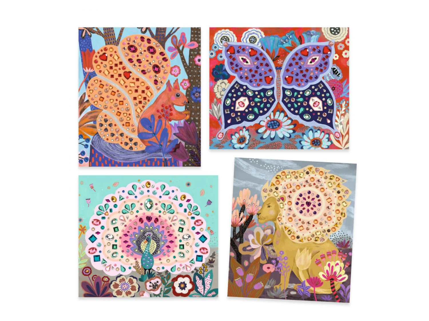 Ce kit propose d’embellir 4 cartes illustrĂ©es avec une multitude de mini diamants facettĂ©s aux formes et aux couleurs variĂ©es. Chaque planche de strass correspond Ă un tableau Ă dĂ©corer. En suivant le pas-Ă -pas proposĂ©, l’enfant donne progressivement du relief et de la brillance aux tableaux et sublime les crĂ©atures illustrĂ©es.
