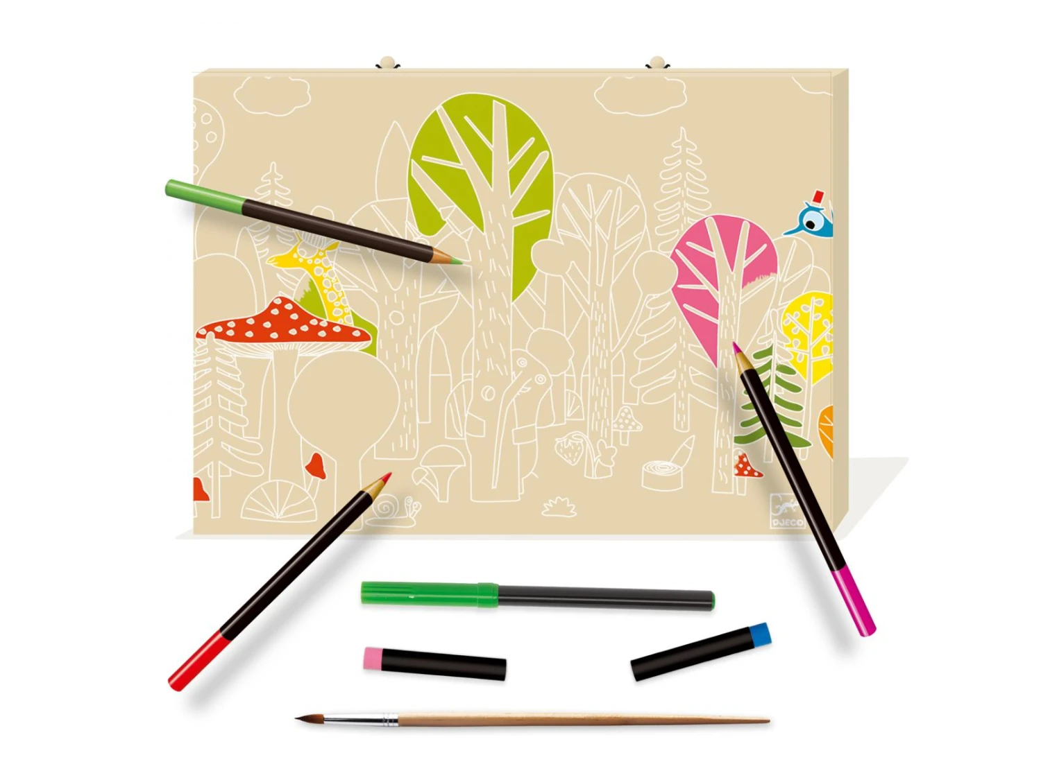 Cette riche mallette renferme un matĂ©riel de qualitĂ© Beaux-Arts et propose aux artistes en herbe de s’initier Ă diffĂ©rentes techniques : pastels, dessins, gouaches… tout y est. L’extĂ©rieur du coffret est ornĂ© d’une frise Ă colorier pour le personnaliser.