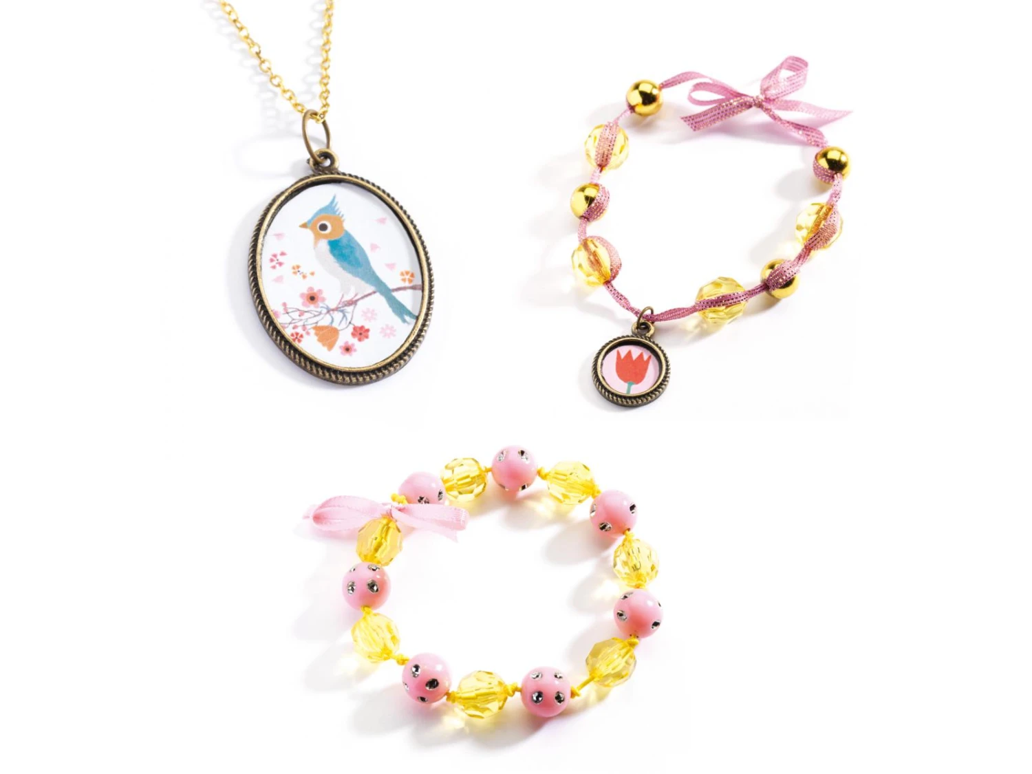 Pour créer de jolis bijoux colorés sur le thème des fleurs en combinant les perles et rubans avec les petits accessoires de son choix. Un coffret qui ravira les enfants, pour des créations dont ils seront fiers !