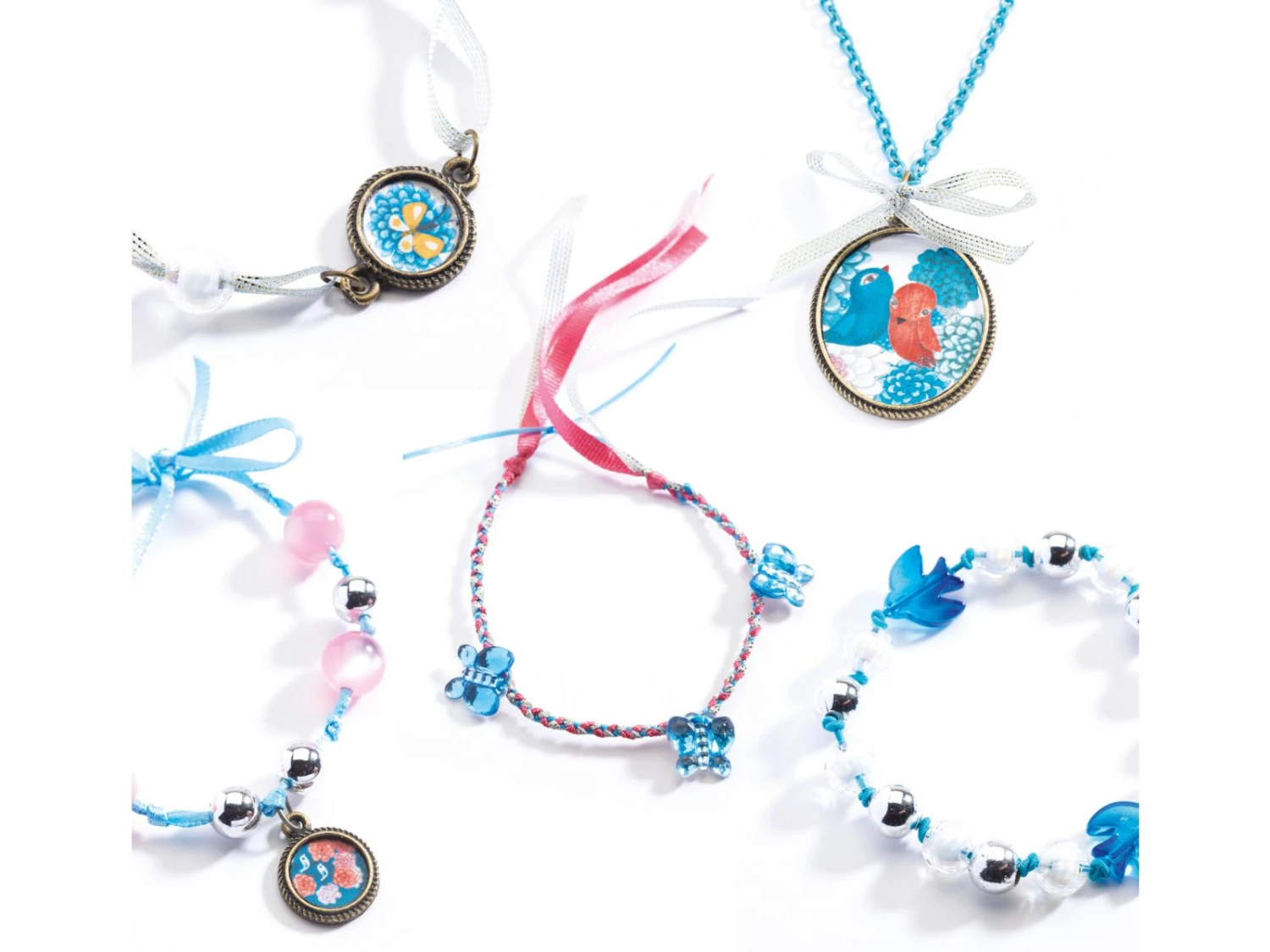 Pour créer de jolis bijoux colorés avec de beaux oiseaux et papillons en combinant les perles et rubans avec les petits accessoires de son choix. Un coffret qui ravira les enfants, pour des créations dont ils seront fiers !