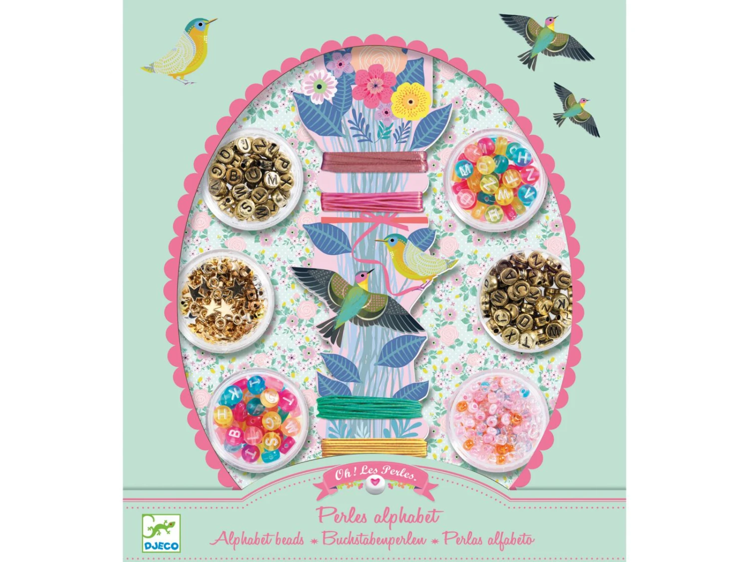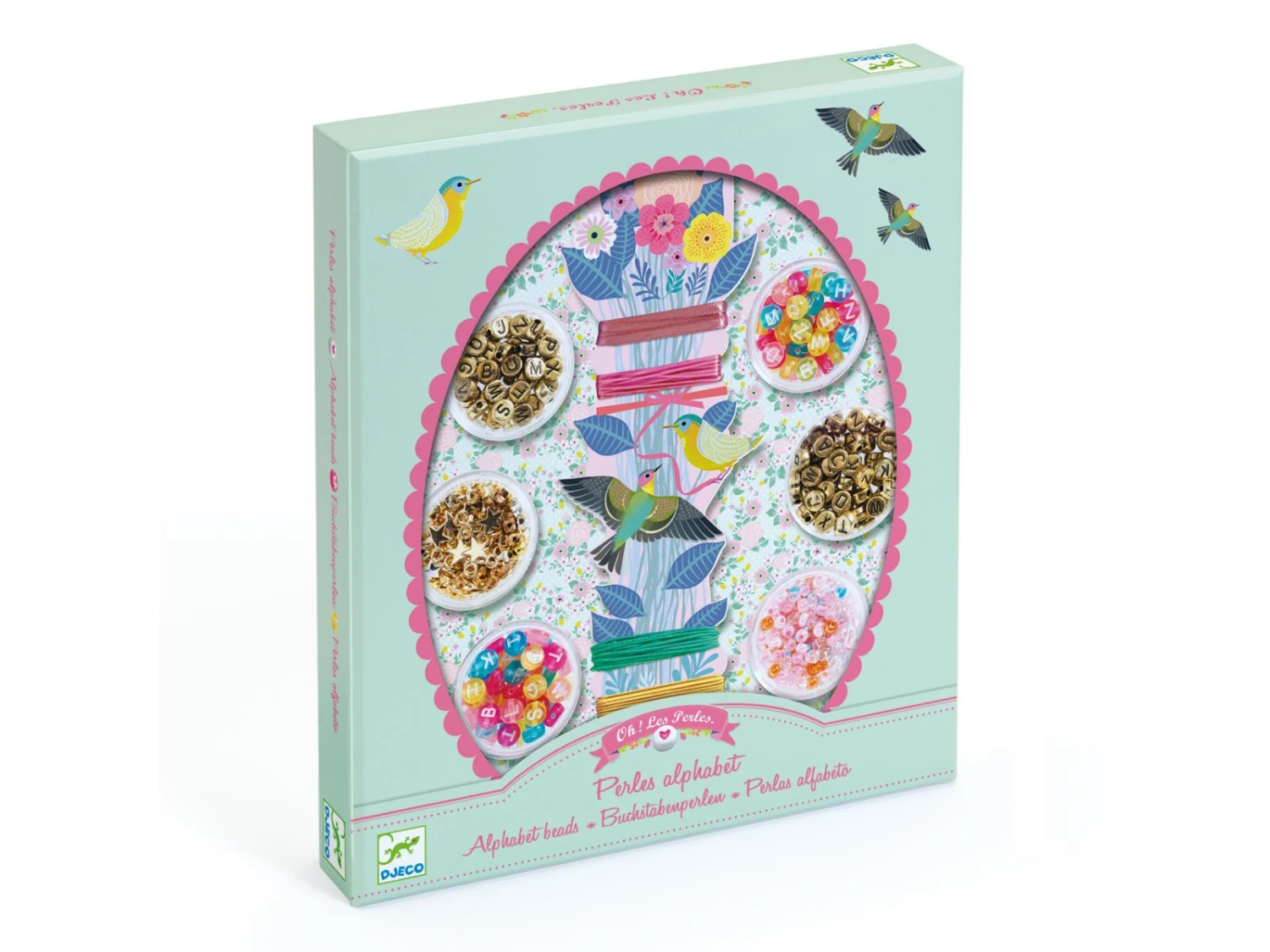 Un coffret très complet contenant une multitude de perles alphabet colorées et dorées et plusieurs fils pour créer de jolis bijoux avec des prénoms ou des messages. Un assortiment de perles en bois colorées bien pensé pour un résultat toujours harmonieux. L’enfant enfile sur les fils les perles pour réaliser de jolis bracelets, colliers et breloques en toute liberté.
