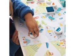 Progressivement, il encre les tampons et marque les empreintes pour animer les dĂ©cors en laissant libre cours Ă son imagination. Les cartes s’assemblent pour crĂ©er de fabuleux parcours. En route !