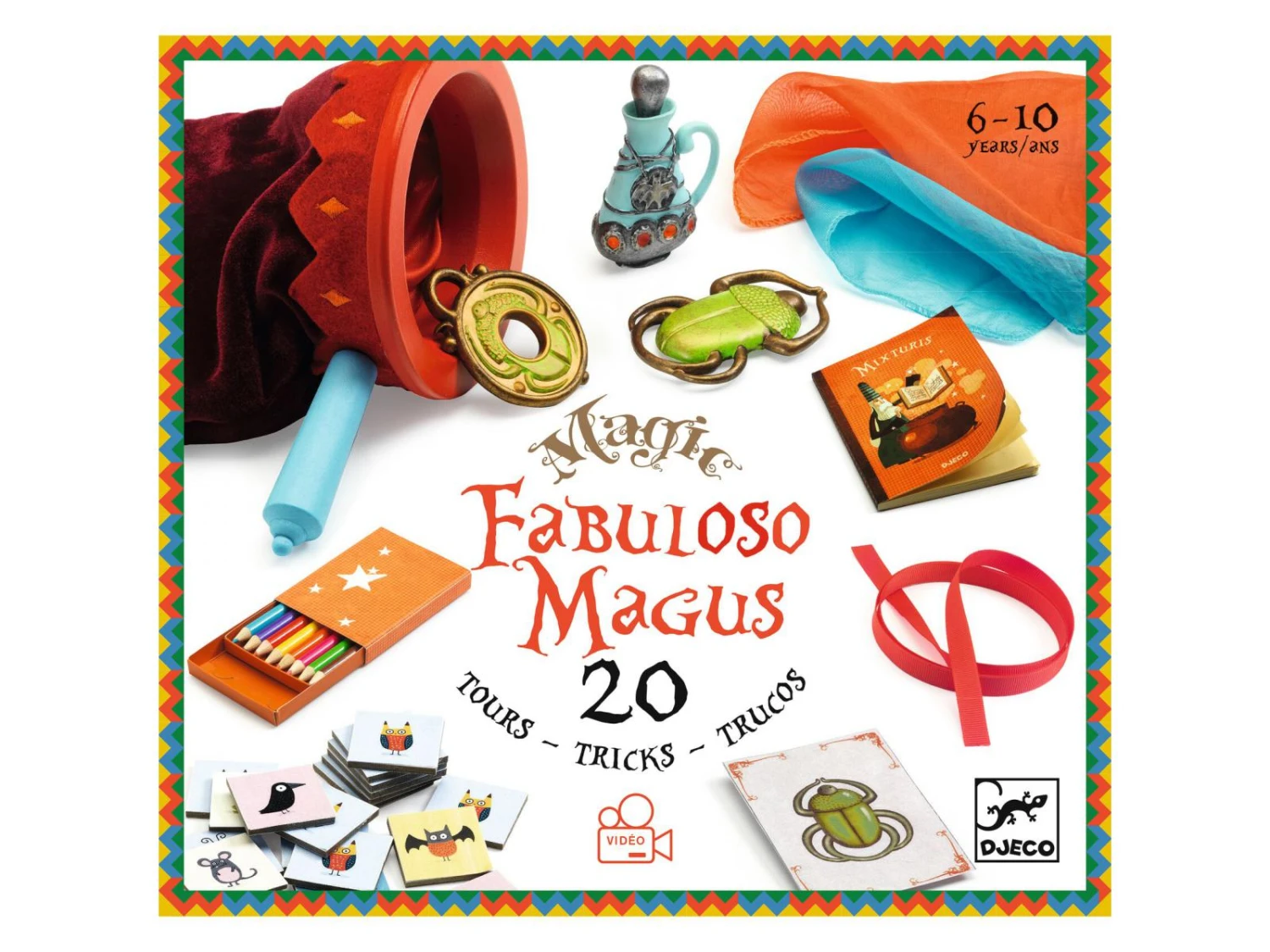 La quĂŞteuse et le livre magique n’aura plus aucun secret pour les apprentis magiciens. Fabuloso Magus est un coffret complet avec plus de 30 accessoires pour rĂ©aliser 20 tours de magie.